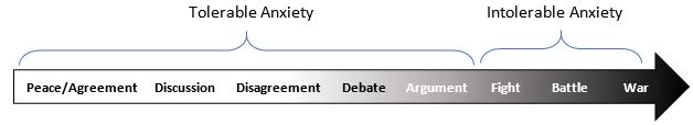 Understanding that each increasing level of conflict brings in equally increasing level of anxiety, the key question then becomes: For you personally, at what point along the scale does the anxiety become intolerable?